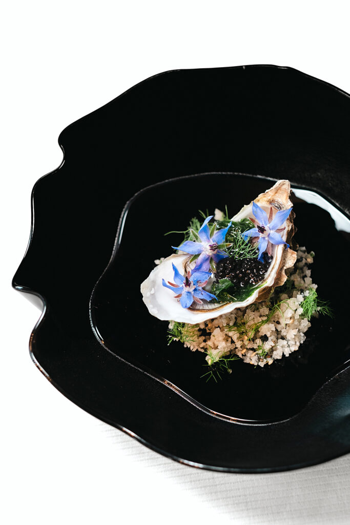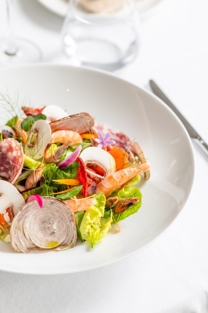 Servis du mardi au samedi au dîner, les deux menus – 5 temps (95 €) et 8 temps (130 €) –concoctés par le chef de cuisine Jean-Alexandre Ouarrata et son équipe débutent par une série d’amuse‑bouches iodés avant de dérouler un crescendo terre‑mer qui épouse le rythme des saisons.