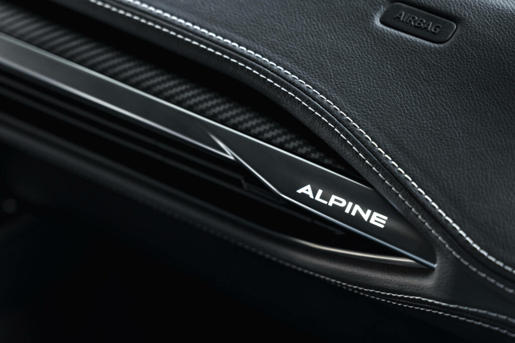 À 110 mm chaque détail se laisse admirer, à l’image des boucliers avant avec des motifs en triangle inspirés des montagnes, intégrant des ouvertures créant des rideaux d’air. D’autres éléments se retrouvent dans sa signature lumineuse unique. Elle est formée à l’avant d’une nuée de triangles illuminés appelée « Cosmic Dust », évoquant l’image d’une comète transperçant l’atmosphère. Ils s’animent dans une séquence de bienvenue lorsque le conducteur s’approche de son véhicule. Une projection du logo Alpine entouré de flocons est aussi dirigée latéralement au niveau du sol.
