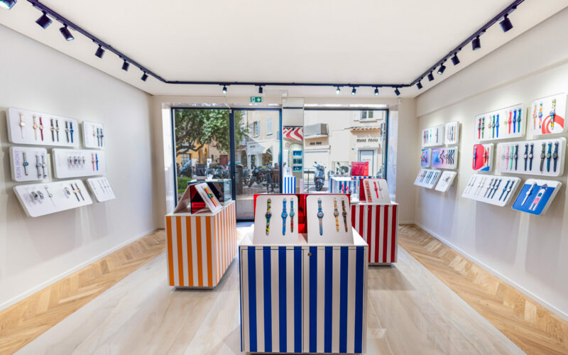 La saison 2026 commence sous le signe du design et de la couleur : Swatch ouvre un pop‑up inédit pour une durée d’un an au n°1 Place de la Garonne, l’une des adresses incontournables du village.