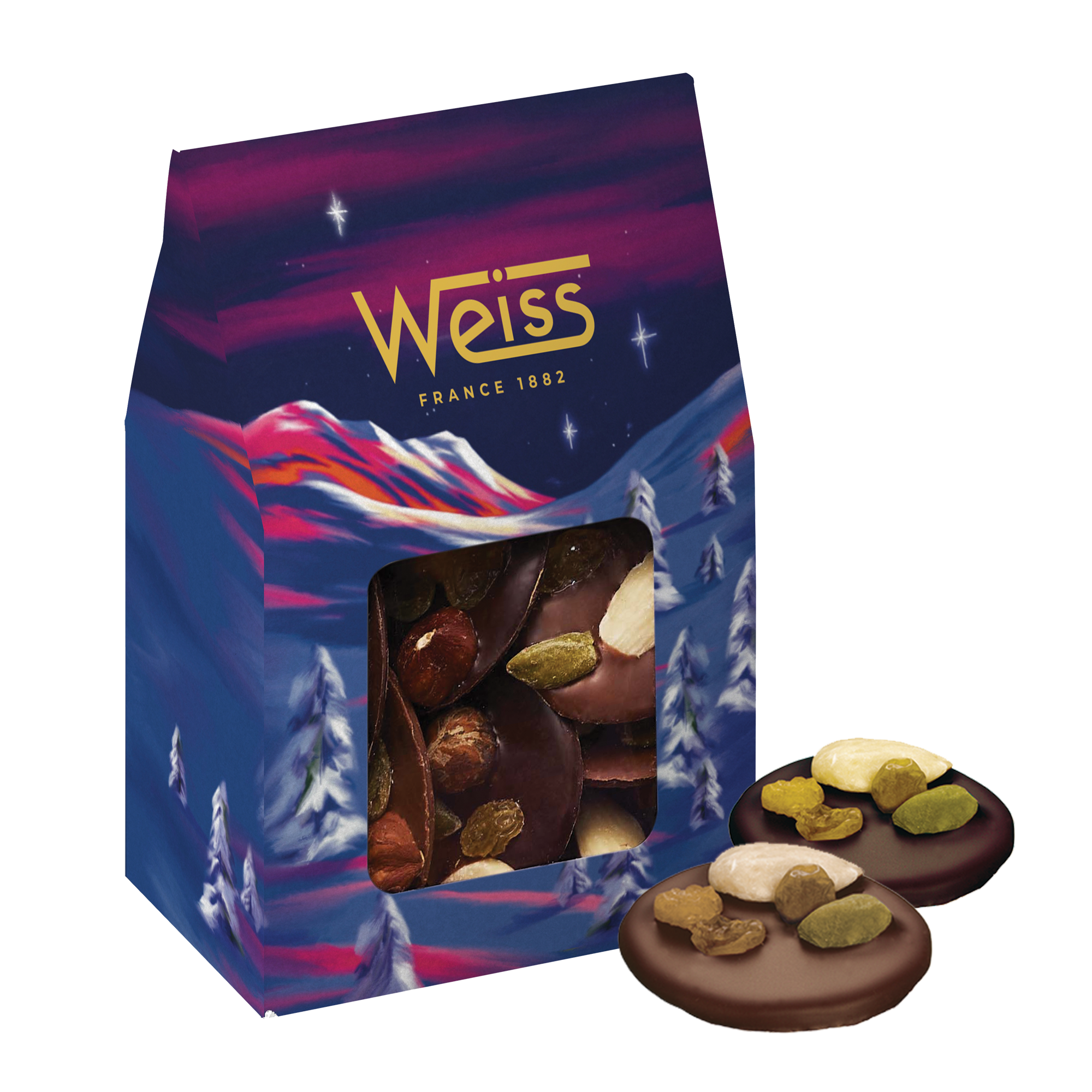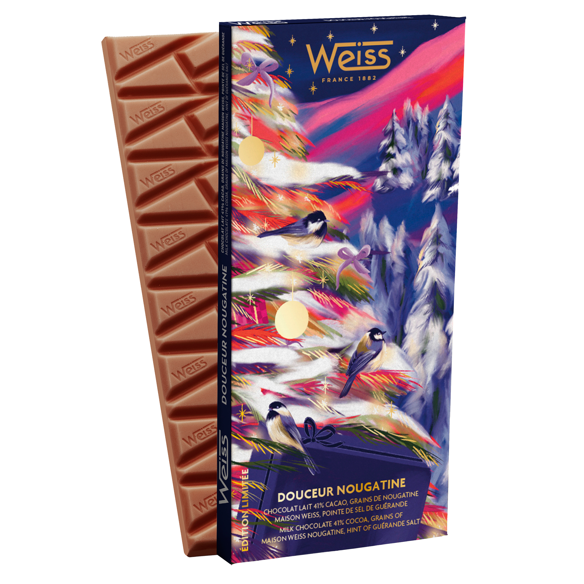 - Comme toujours et depuis 1882, cette collection s’inscrit dans les valeurs de la chocolaterie Weiss, des chocolats et pralinés.