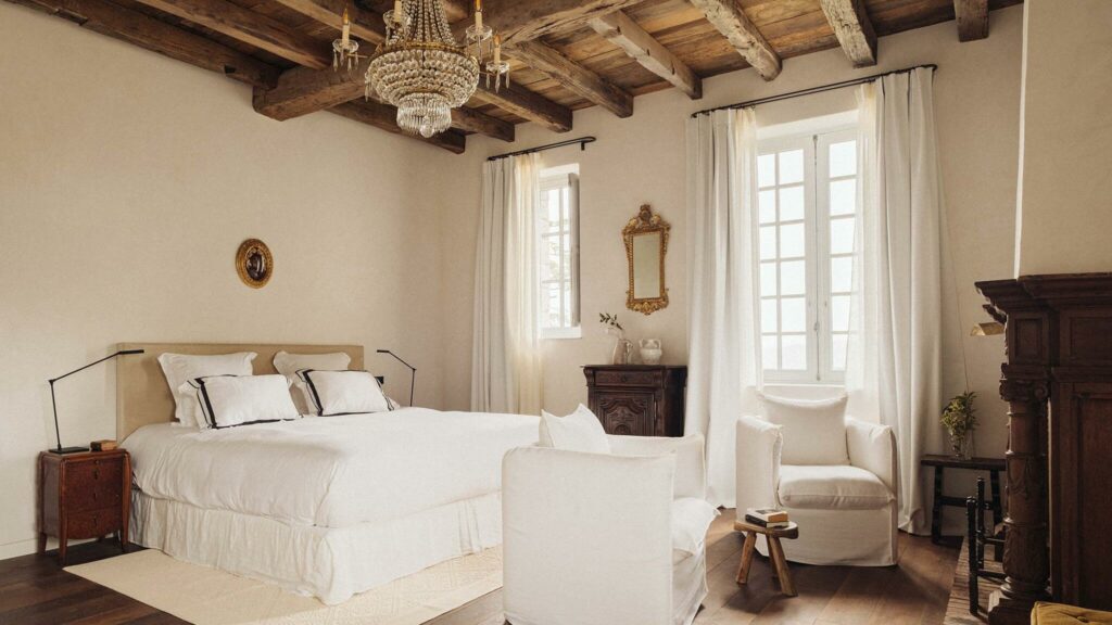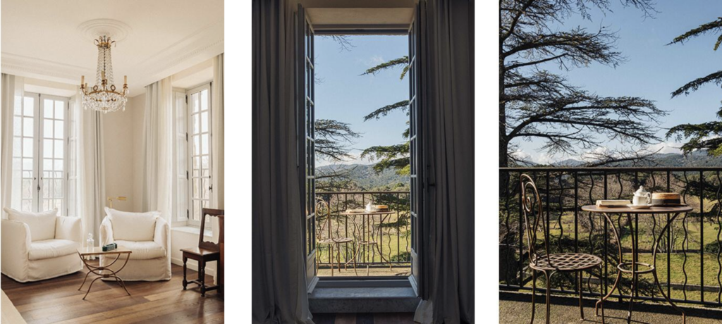 Baignés de lumière, ces espaces de nuit, subtilement épurés, marient avec élégance les accents du passé et le confort contemporain et laissent la nature s’intégrer harmonieusement au décor.