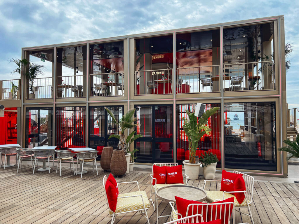 La plage Campari, installée sur la plage Hyde Beach, est un espace temporaire sur la Croisette. Elle est ouverte aux visiteurs et aux festivaliers et offre un espace en plein air. Le design du lieu s’inspire de la Méditerranée, et le groupe Campari y est présent à travers une approche visuelle chic et sophistiquée. Pendant la quinzaine du festival, ce site devient un point de rencontre pour découvrir l’univers de Campari, notamment à travers la proposition de cocktails, dont le Campari Spritz.