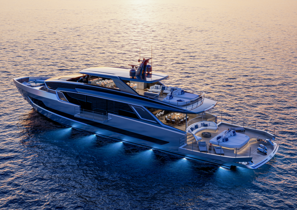 Le premier exemplaire a été vendu à un client américain et est actuellement en construction chez Palumbo Superyachts Ancona. Il sera mis à l’eau cet été et fera ses débuts mondiaux au prochain Festival international de la voile de Cannes.