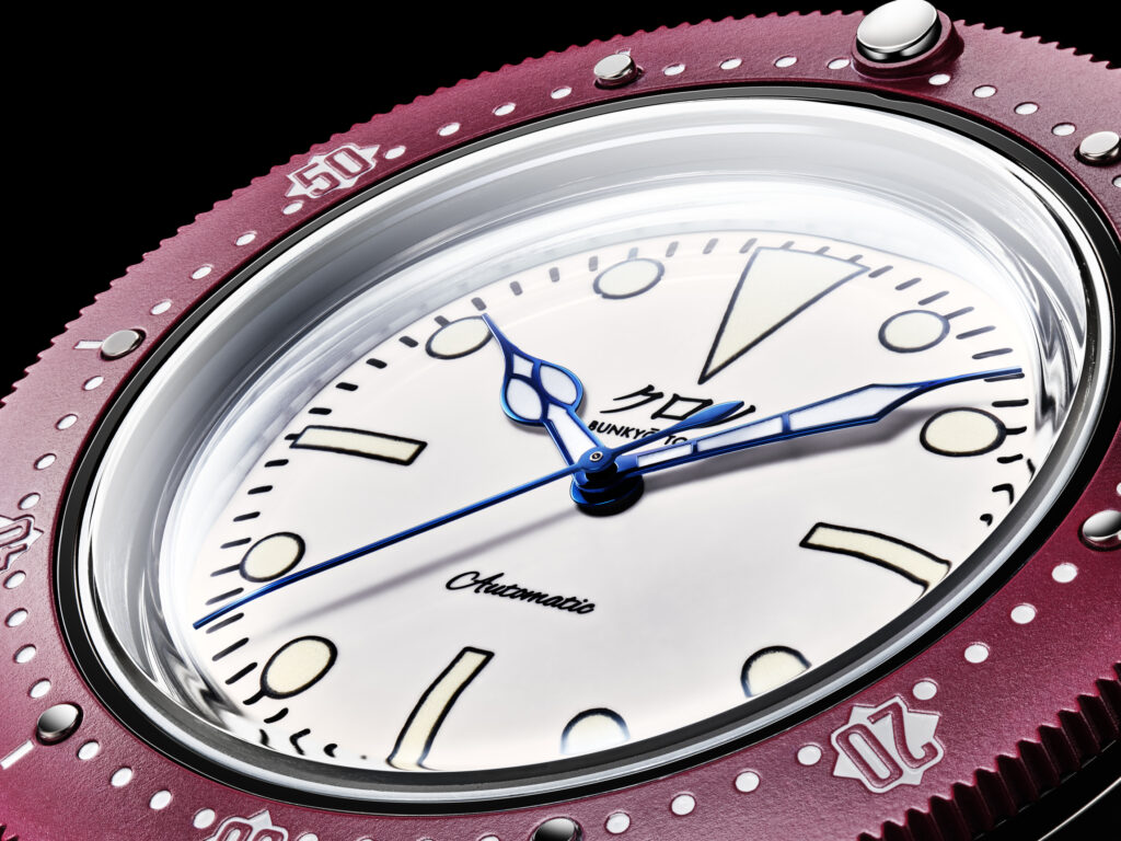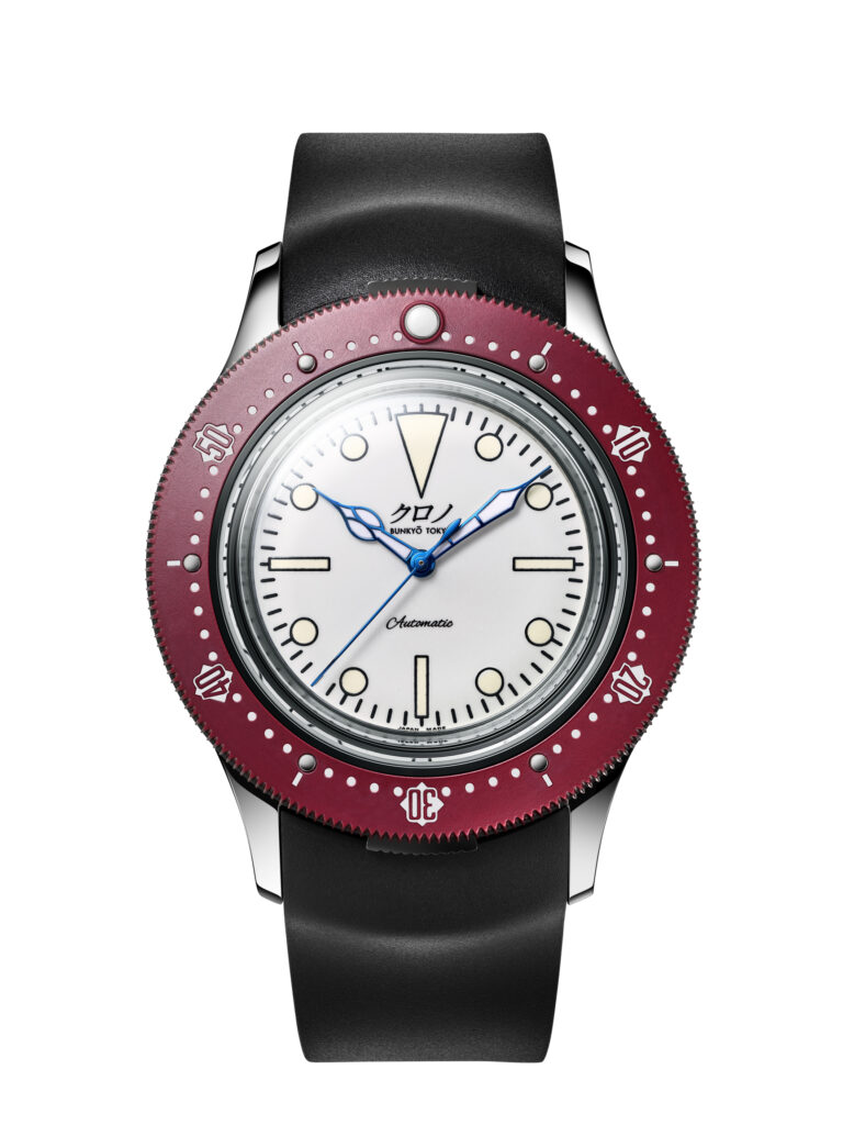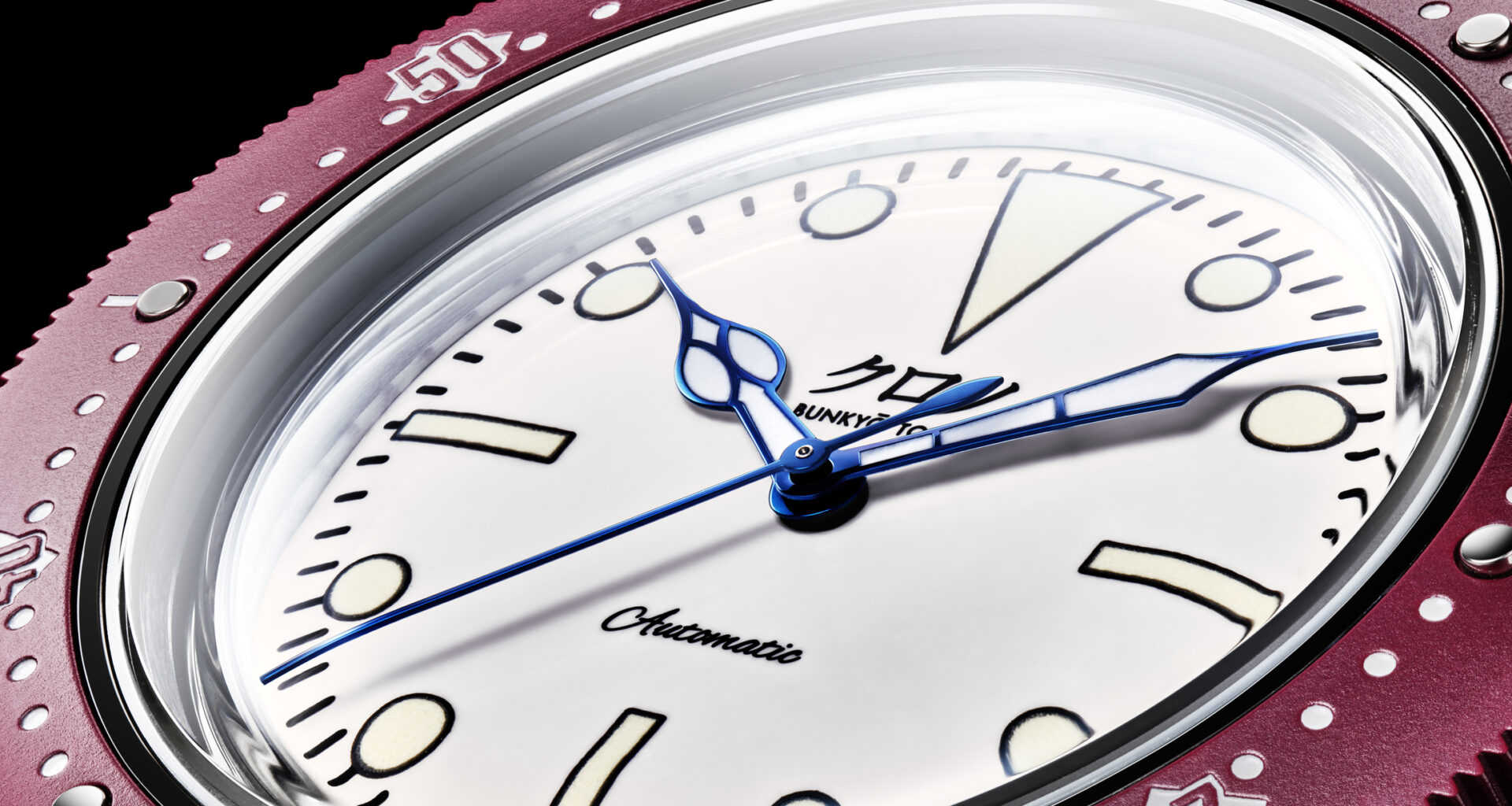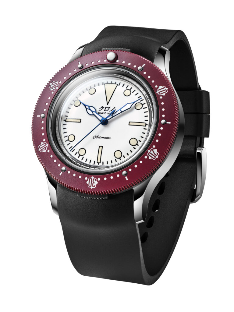 La nouvelle Kurono Diver’s : ダイバーズ revisite l’architecture conventionnelle des montres de plongée. Le boîtier automatique de 35 mm est logé dans un boîtier spécialement conçu pour la plongée, ce qui permet à la montre de passer sans difficulté d’un accessoire raffiné au quotidien à un instrument destiné à la plongée récréative. Testée individuellement et certifiée étanche jusqu’à 100 mètres, elle a été conçue pour résister à des profondeurs allant jusqu’à 300 mètres.