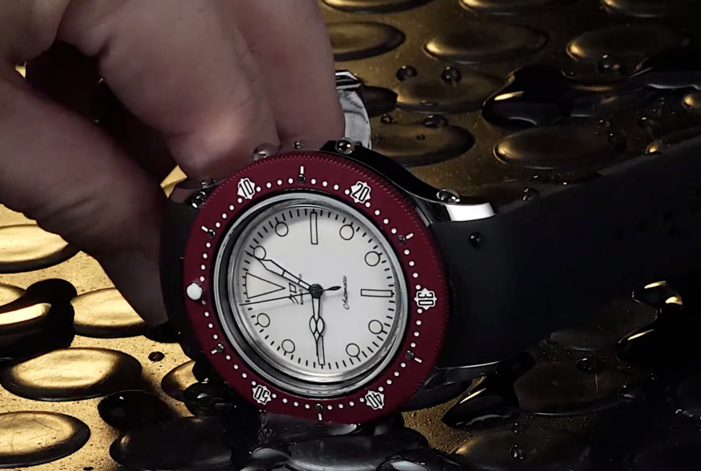 « Son fonctionnement est intuitif et fluide. La lunette fait office de couvercle fileté; à l’aide d’un ouvre-boîte dédié, elle se dévisse facilement dans le sens inverse des aiguilles d’une montre. De plus, la lunette est dotée d’un mécanisme de rotation unidirectionnel, indispensable pour les plongeurs, qui permet de suivre le temps écoulé tout en empêchant le boîtier de se desserrer accidentellement. Pour une utilisation plus légère, le boîtier peut être ouvert ou fermé à la main sans outil ; tant que la lunette reste bien en place lorsqu’elle est testée dans le sens inverse des aiguilles d’une montre, le joint offre une étanchéité équivalente à 10 ATM.