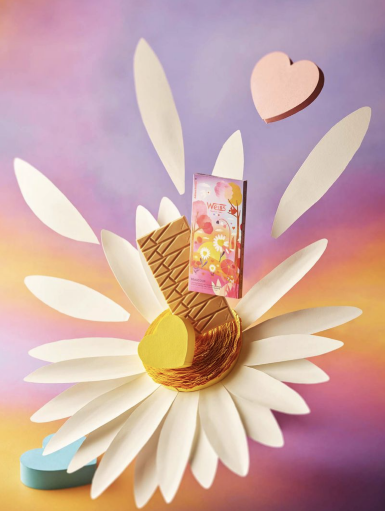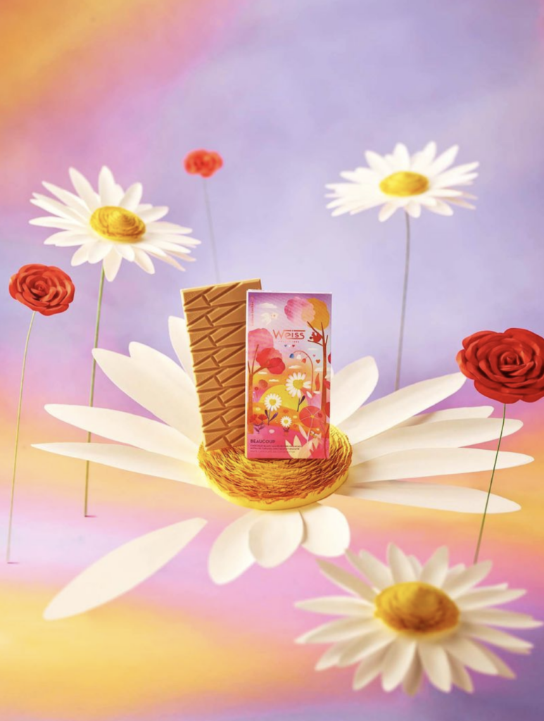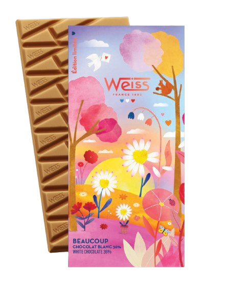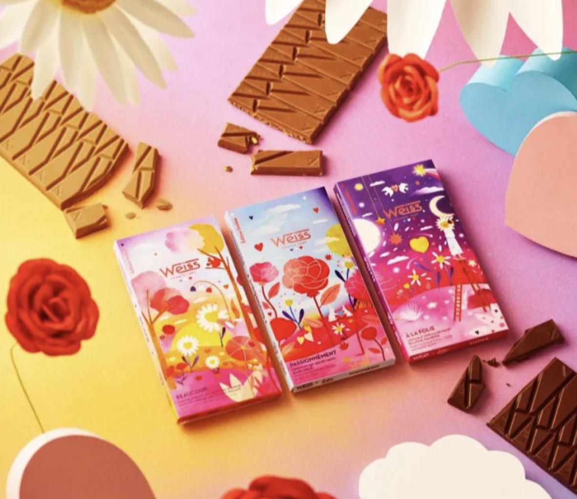 Weiss présente sa collection capsule signée par l’artiste Laura Lhuillier, nommée « L’Amour ». Et l’amour du chocolat, cela fait plus de 140 ans que la Chocolaterie Weiss le célèbre sous toutes ses formes, depuis 1882 exactement. Un carré, un morceau, la tablette entière – un peu, passionnément, à la folie ! C’est l’amour de la gourmandise chocolatée avec un grand A.