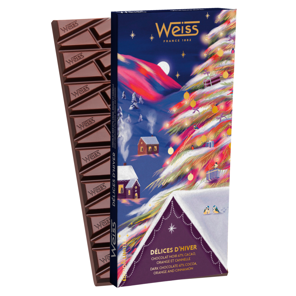 À travers cette rencontre gourmande qui évoque les parfums envoûtants des traditions de Noël, Weiss invite les gourmands à découvrir l’intensité du chocolat noir allié à la fraîcheur vibrante de l’orange. Le tout sublimé par la douceur de la cannelle, une recette en édition limitée !